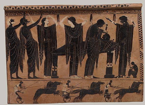 Χαρακτηριστικά τελούσαν την τελεστική ταφή (Πρόθεσις) όπου ο μύστης ξάπλωνε σε ένα κρεβάτι τον σκεπάζαν με μαύρο ύφασμα και του πετούσαν μερικές χούφτες χώμα ως ένδειξη θανάτου και εξόδου της ψυχής στο νοητό πεδίο των θεών.